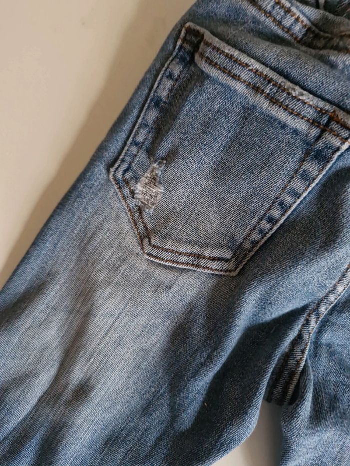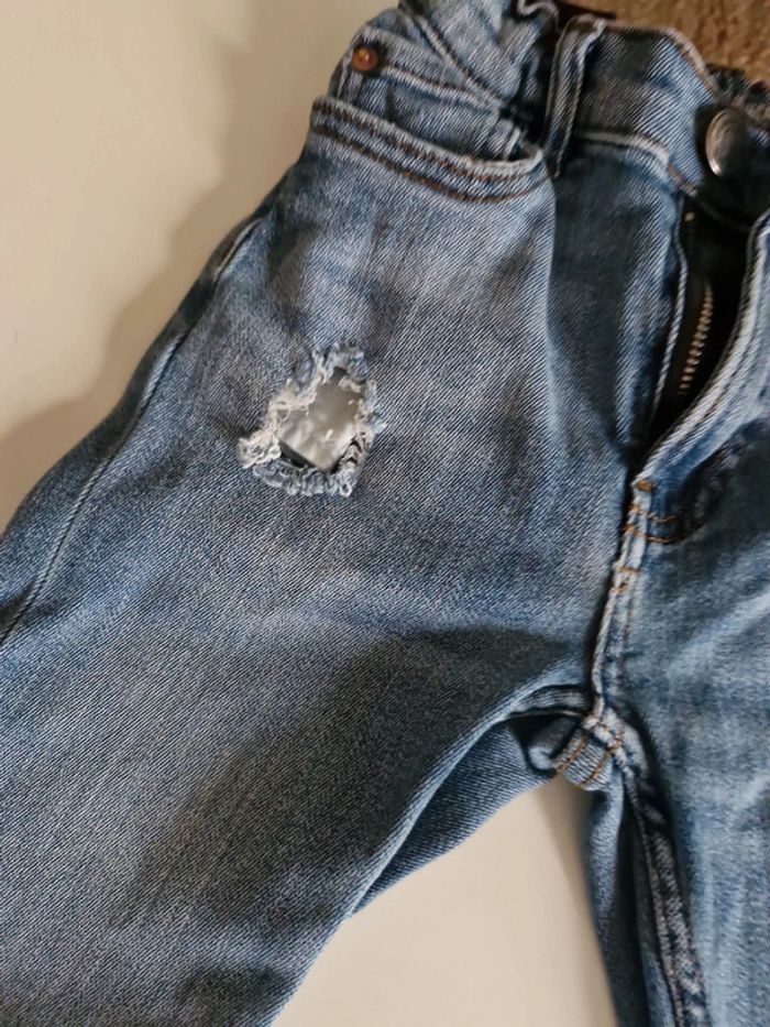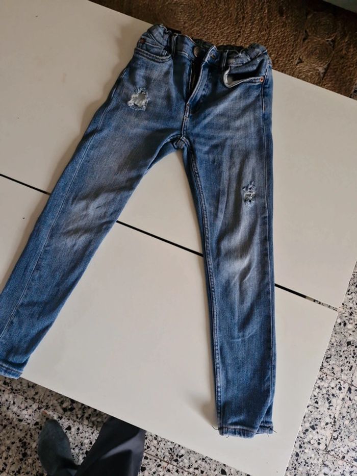 Jeans zara . 8 ans . Taille élastique. Effet mode trou voir photo . Bon état