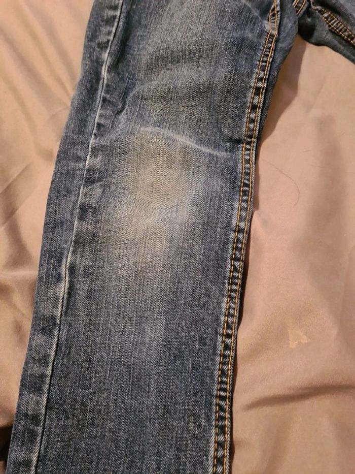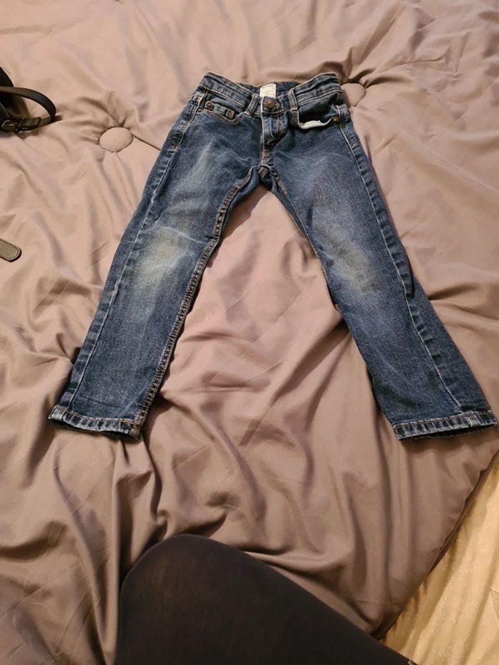 Jean kiabi 5 ans , trace d'Herbe sur genoux léger à l'œil. Peux être encore largement porté , mis à part cette tâche jeans en bon état, pas de trou