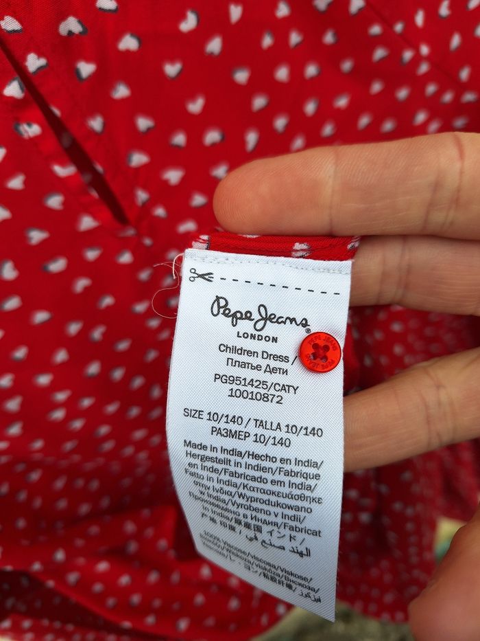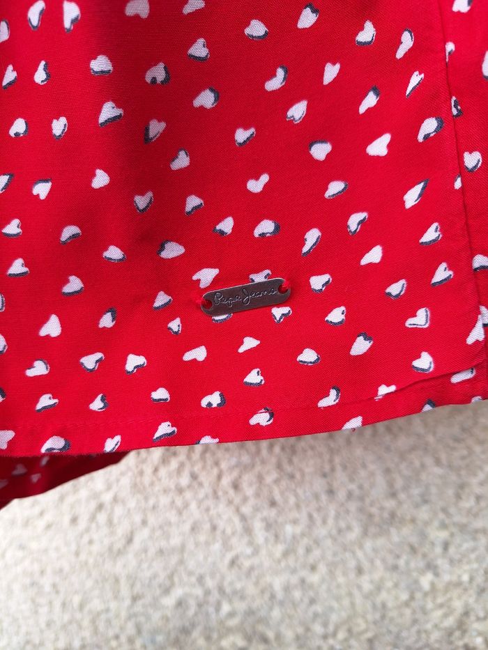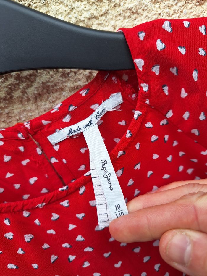 Robe à manches longues Marque Pepe Jeans Taille 10 ans 140 cm Matière 100% viscose Couleur rouge, blanc, noir Imprimé avec motif coeurs Fermeture par bouton au niveau de la nuque Plaque avec logo de la marque au bas de la robe Base élastiquée au niveau des poignets avec finition volants Bouton supplémentaire attaché à l'étiquette intérieure Très bon état 🚨 Réductions activées sur les lots 🚨 🟡 2 articles -5% 🟠 3 articles -10% 🔴 5 articles et plus -15% #10ansfilleevaura76 #robe #pepejeans #10ans #140cm