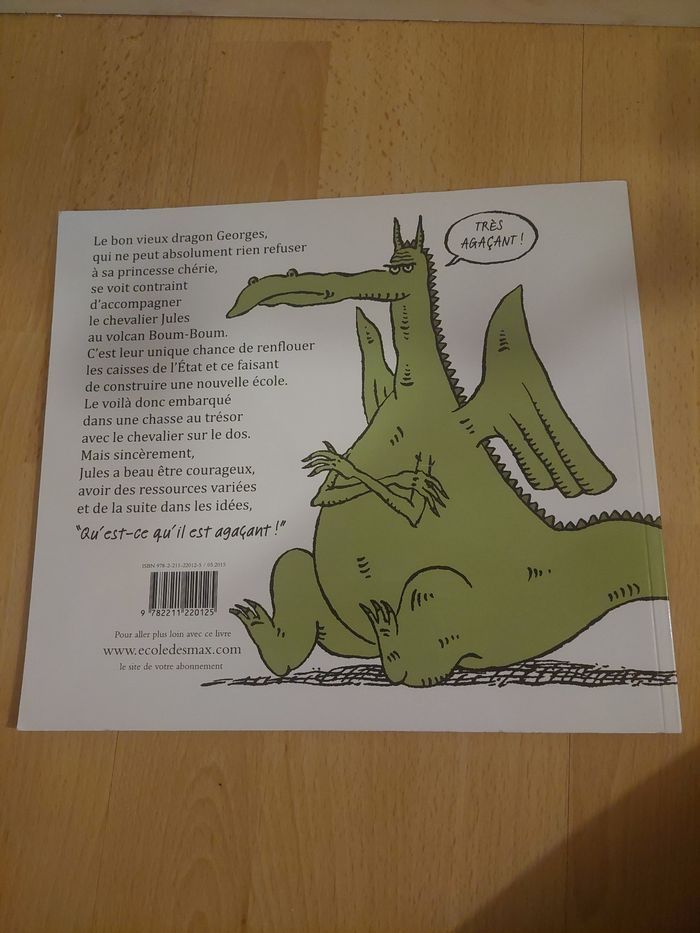 〰️ Jules le chevalier agaçant ➡️Auteur/illustrateur : Geoffroy de Pennart ➡️Editeur : Ecole des loisirs (l') ➡️2013 ➡️Album 6 à 8 ans ➡️ISBN : 9782877677929 ➡️Thème : aventure, courageux, dragon, humour, jalousie, personnage de conte (divers), prince, princesse, chevalier ➡️Le bon vieux dragon Georges, qui ne peut absolument rien refuser à sa princesse chérie, se voit contraint d’accompagner le chevalier Jules au volcan Boum-Boum. C’est leur unique chance de renflouer les caisses de l’État et ce faisant de construire une nouvelle école. Le voilà donc embarqué dans une chasse au trésor avec le chevalier sur le dos. Mais, sincèrement, Jules a beau être courageux, avoir des ressources variées et de la suite dans les idées, « Qu’est-ce qu’il est agaçant ! » 💮Etat : BE (lu qu'une fois, trace de l'étiquette du prénom de ma fille qui a été enlevée à l'arrière du livre, se voit qu'à la lumière, petit trait rouge sur la couverture) #virginie63zlivre