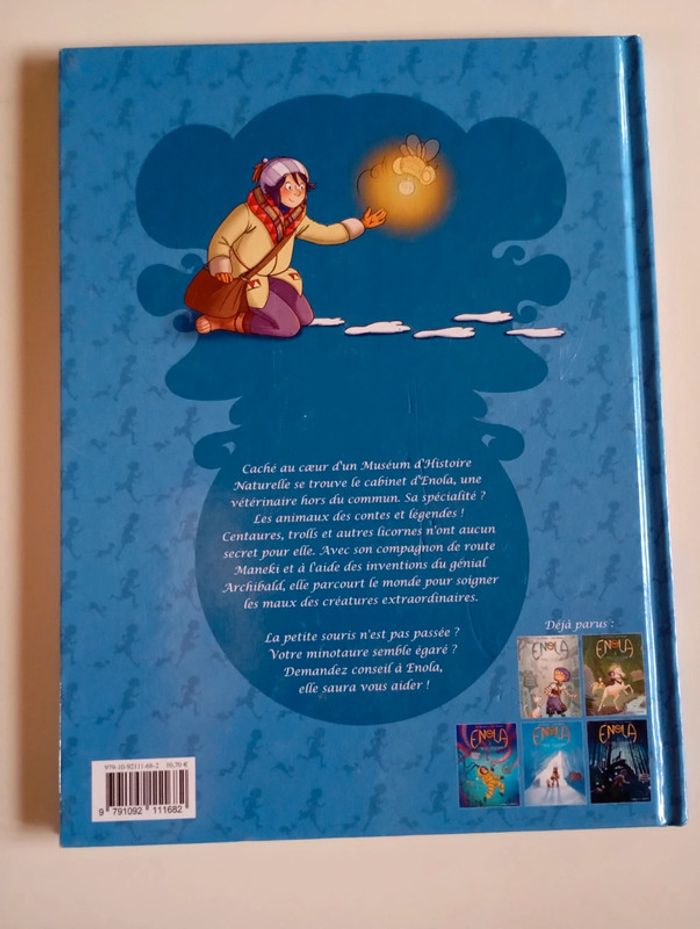 Caché au coeur d'un Muséum d'Histoire Naturelle se trouve le cabinet d'Enola, une vétérinaire hors du commun. Sa spécialité ? Les animaux des contes et légendes ! Centaures, trolls et autres licornes n'ont aucun secret pour elle. Avec son compagnon de route Maneki et à l'aide des inventions du génial Archibald, elle parcourt le monde pour soigner les maux des créatures extraordinaires. La petite souris n'est pas passée ? Votre minotaure semble égaré ? Demandez conseil à Enola, elle saura vous aider ! Éditeur ‏ : ‎ DE LA GOUTTIERE 32 pages Dimensions ‏ : ‎ 23 x 0.9 x 30 cm BD en excellent état Je vends d'autres bd d'Enola #phil_peg_enola #enola