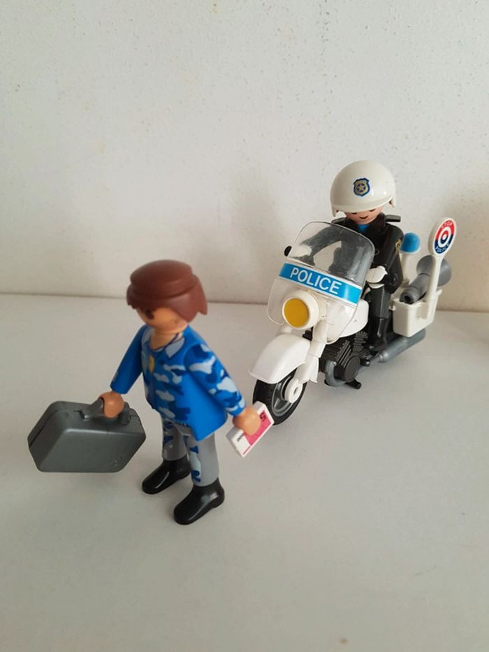 2 figurines : motard agent de police et voleur