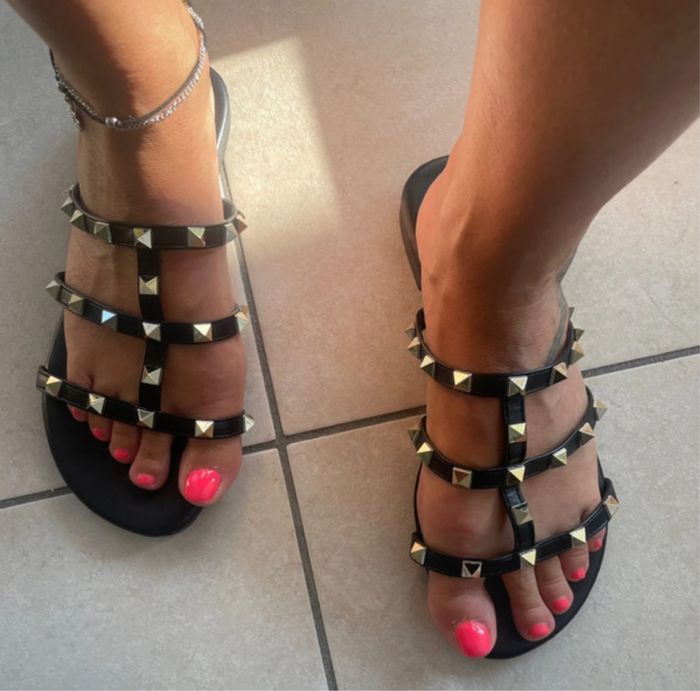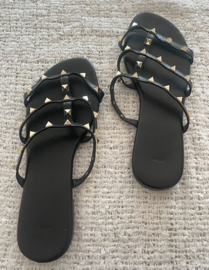 Claquettes noires à clous doré sur le dessus, taille 39, portées 1 fois quasi neuves #sandra13190chaussures