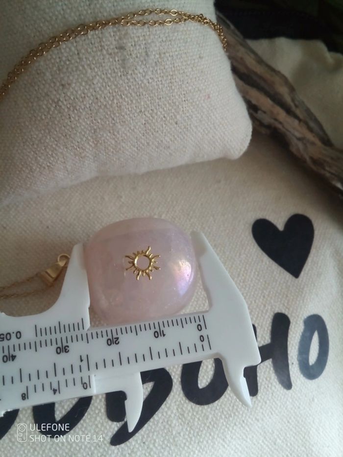 Collier pendentif en pierre de quartz aura avec soleil - photo numéro 2