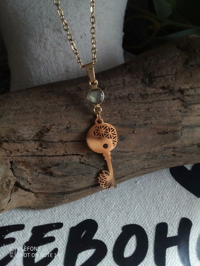 Collier clé zen lotus yin yang et labrador naturelle - photo numéro 2