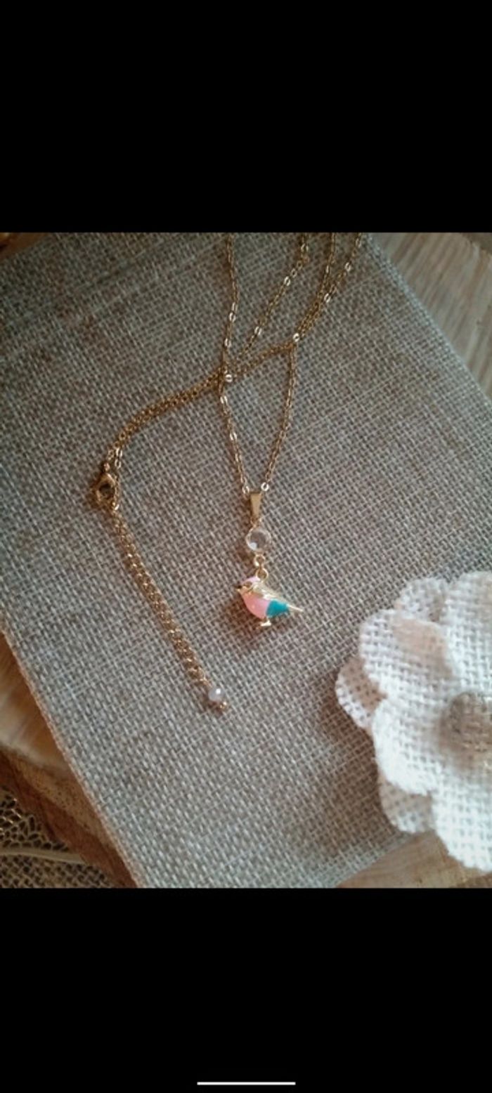 Collier oiseau et connecteur en cristal de roche - photo numéro 1