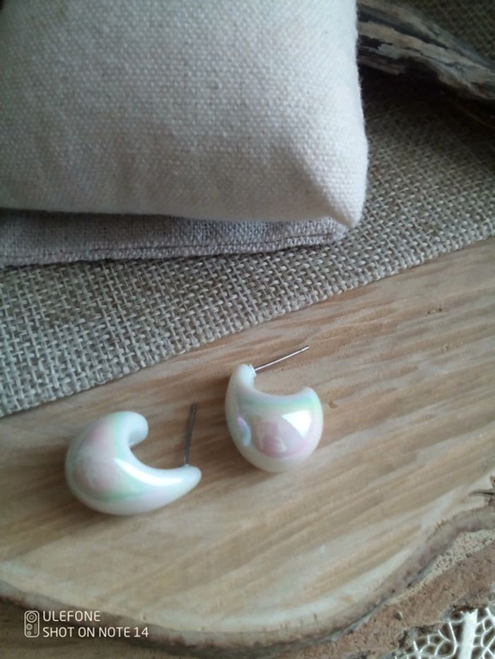Boucles d'oreilles blanc poudré - photo numéro 2