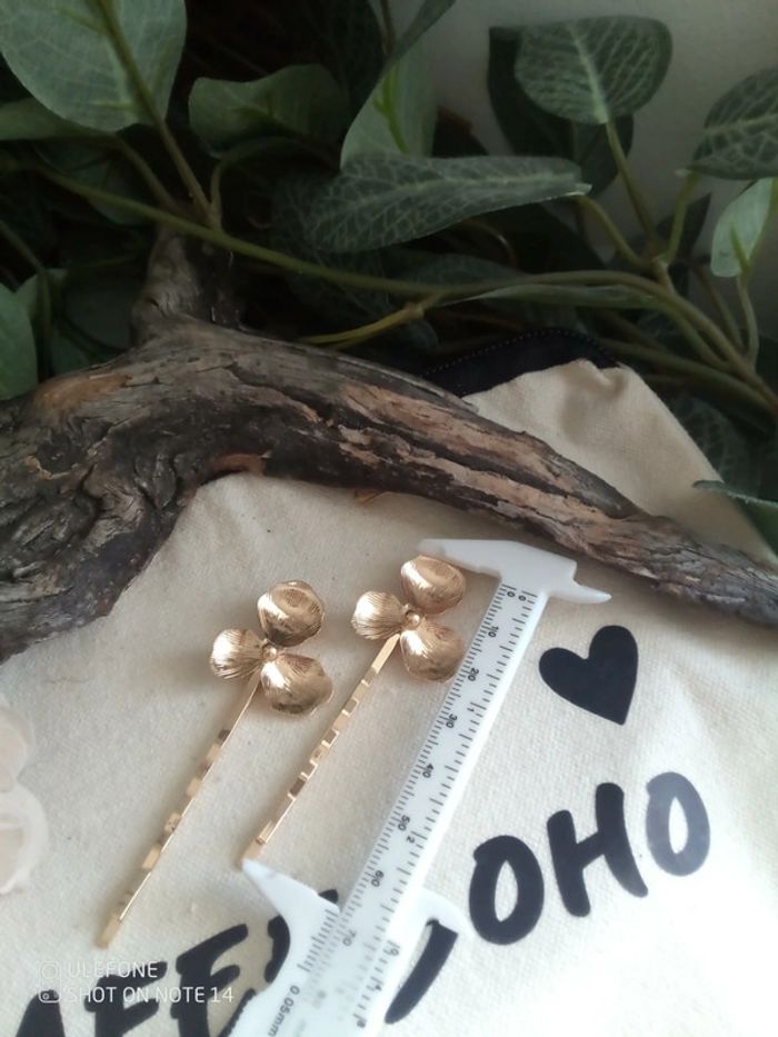 Barrettes bohèmes fleurs dorées - photo numéro 1