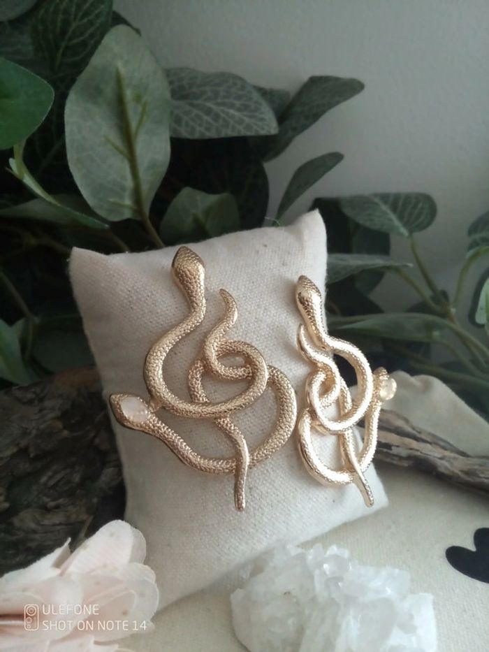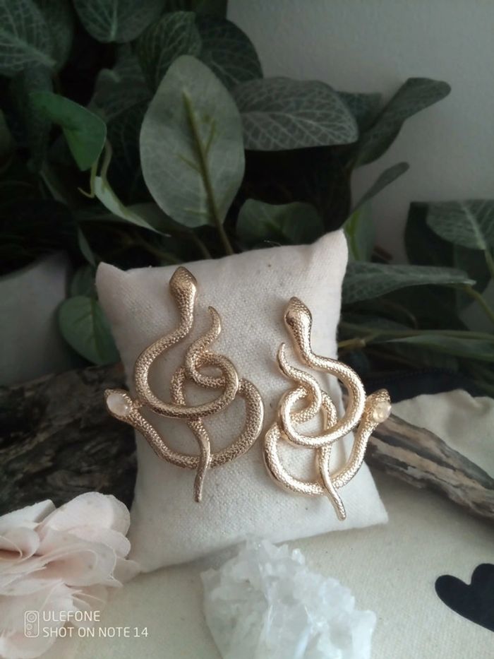 Boucles d'oreilles serpents dorés et pierres de lune naturelles