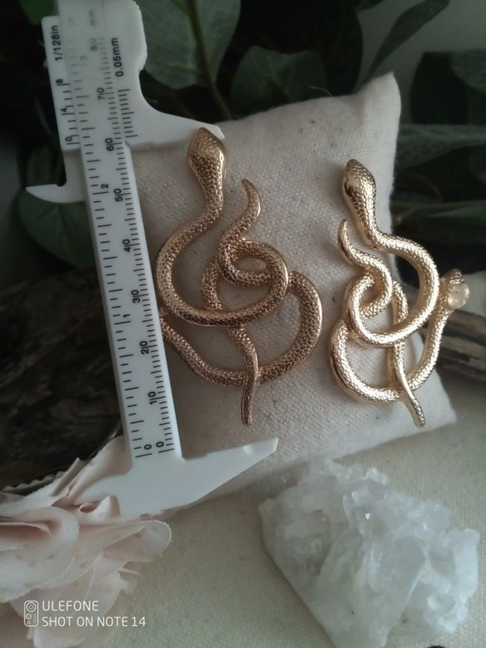 Boucles d'oreilles serpents dorés et pierres de lune naturelles - photo numéro 2