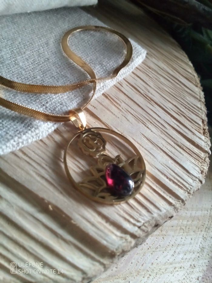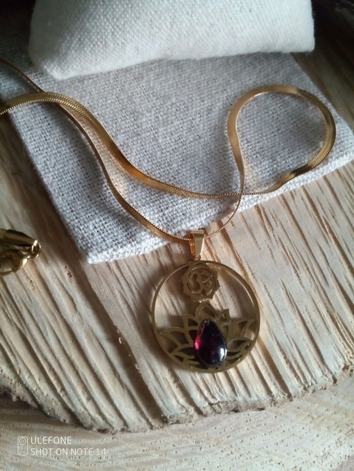 Collier fleur de lotus et pierre de grenat naturelle - photo numéro 1