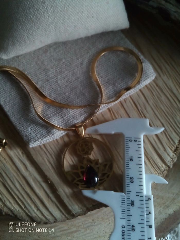 Collier fleur de lotus et pierre de grenat naturelle - photo numéro 4