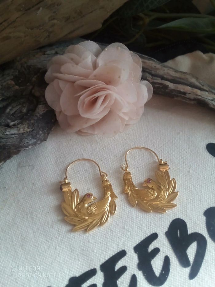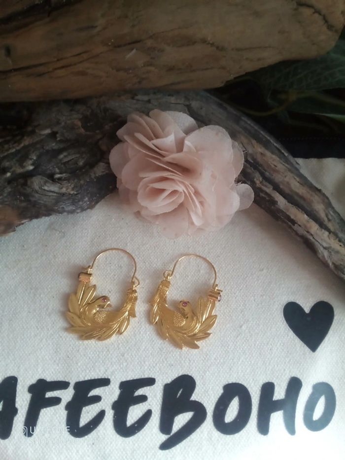 Boucles d'oreilles bohèmes oiseaux dorés - photo numéro 1