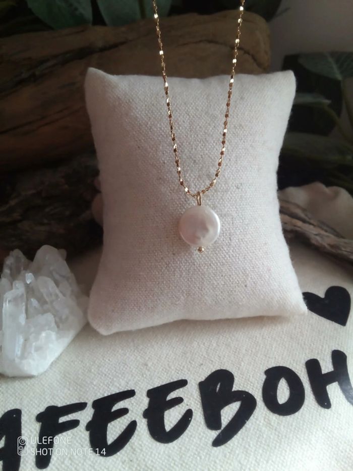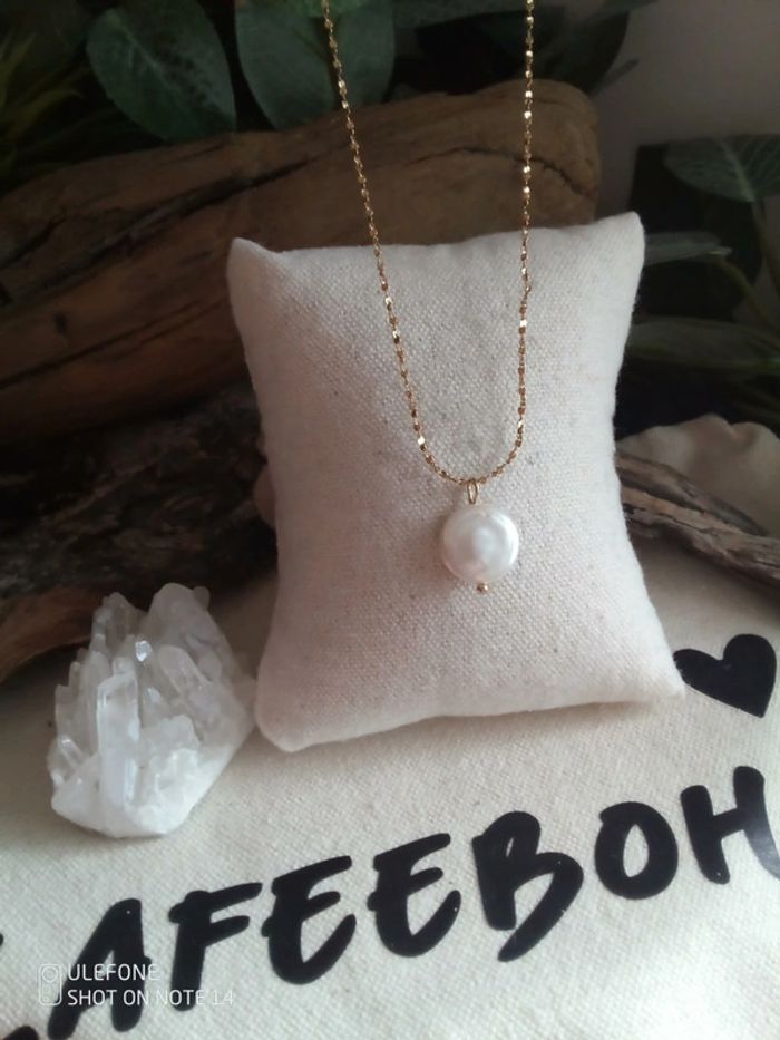 Collier bohème perle de culture d'eau douce blanche - photo numéro 1