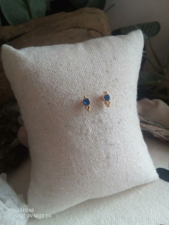 Petites boucles d'oreilles puces bleues serties à l'orientale