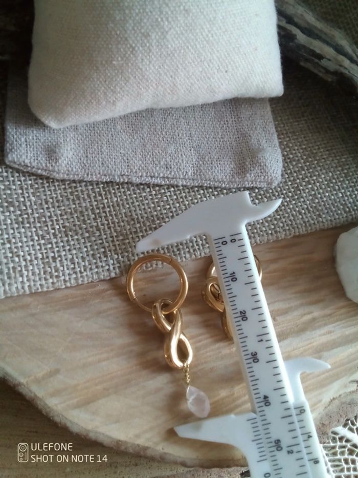 Petites créoles pendentifs infinis et pierres de quartz rose - photo numéro 2