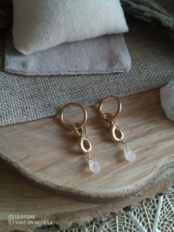 Petites créoles pendentifs infinis et pierres de quartz rose - photo numéro 1