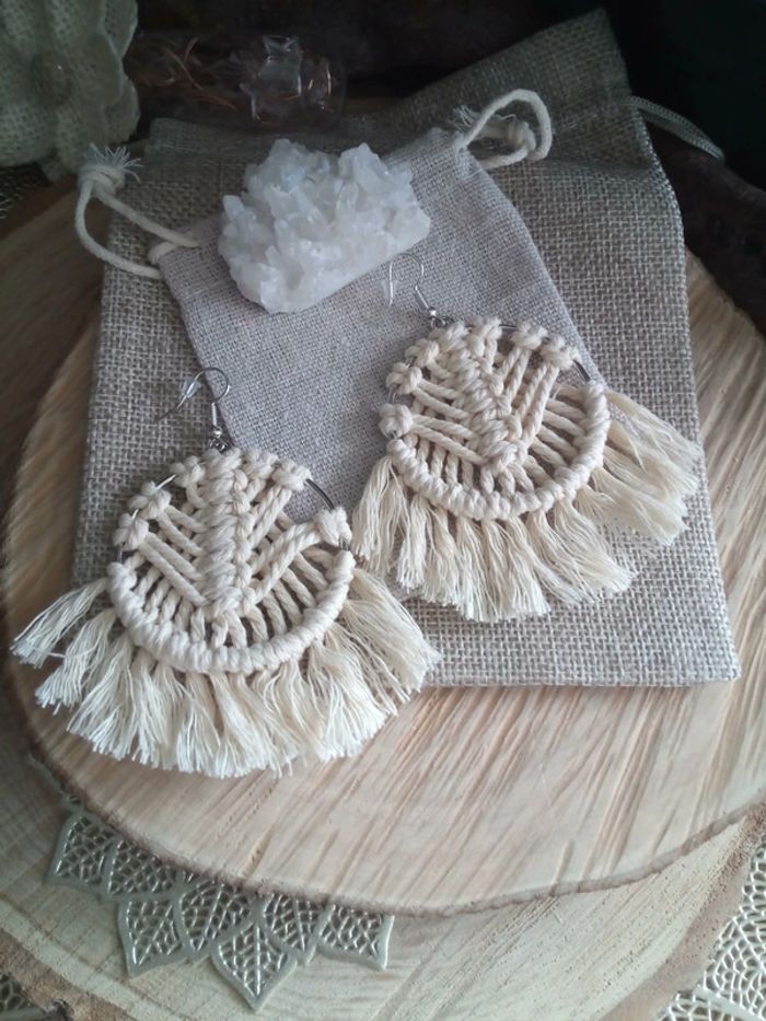 Boucles d'oreilles créoles bohèmes en coton - photo numéro 1