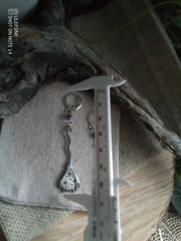 Boucles d'oreilles bohèmes balai sorcière pierres d'améthyste 💜. - photo numéro 2