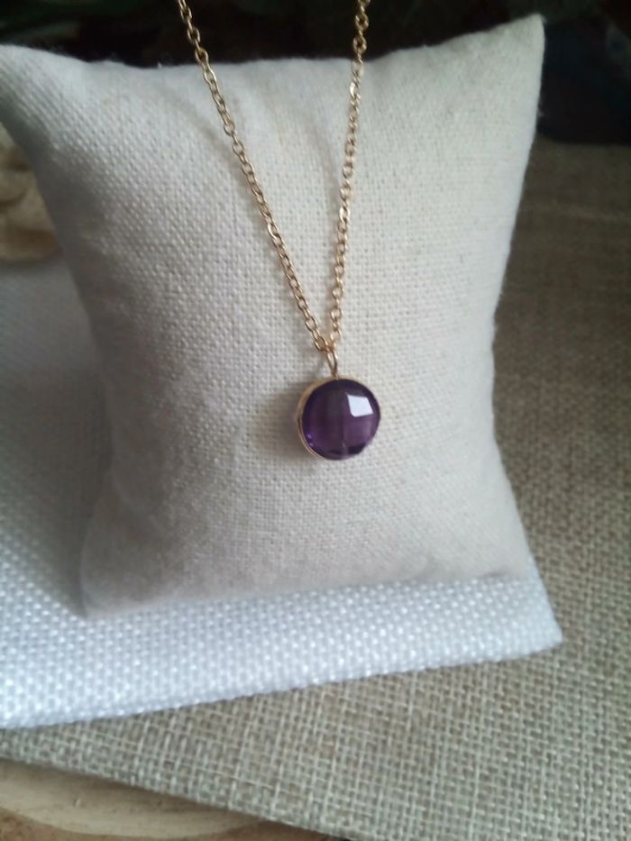 Collier pierre naturelle d'améthyste à facettes et sertie - photo numéro 1
