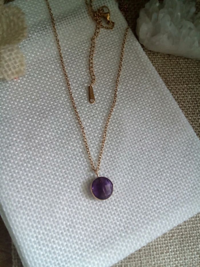Collier pierre naturelle d'améthyste à facettes et sertie
