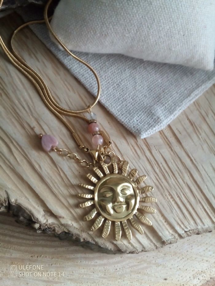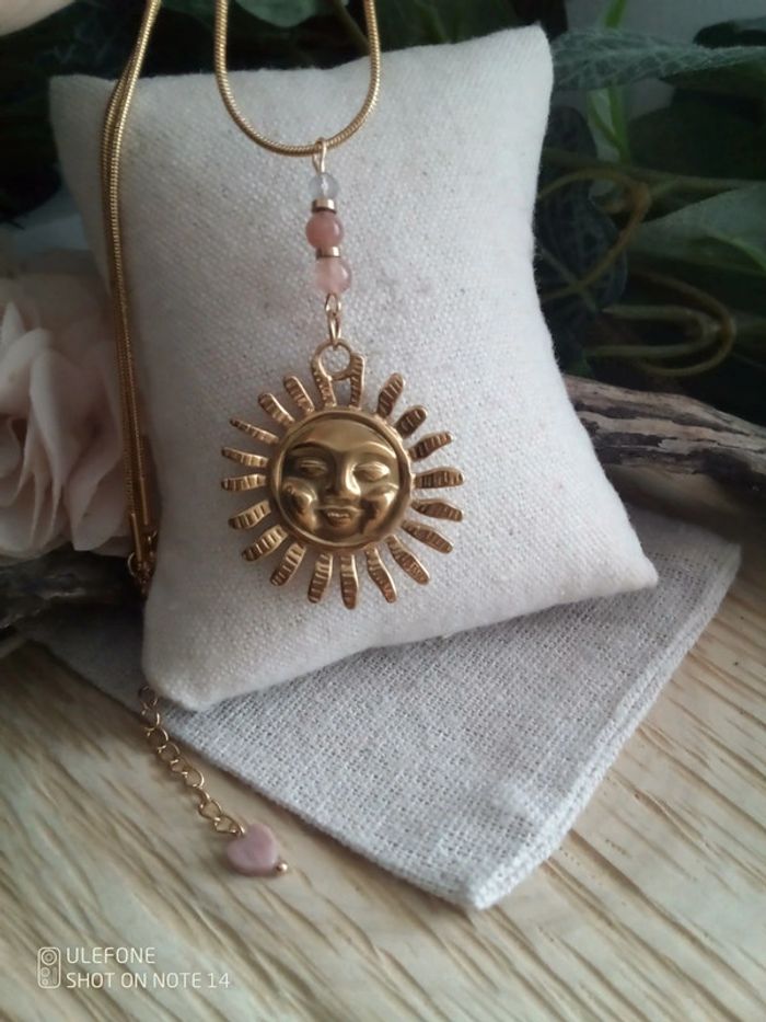 Collier pendentif soleil Inca et pierres du soleil - photo numéro 1