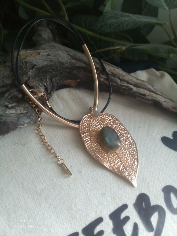 Collier feuille bohème avec pierres de labradorite - photo numéro 3