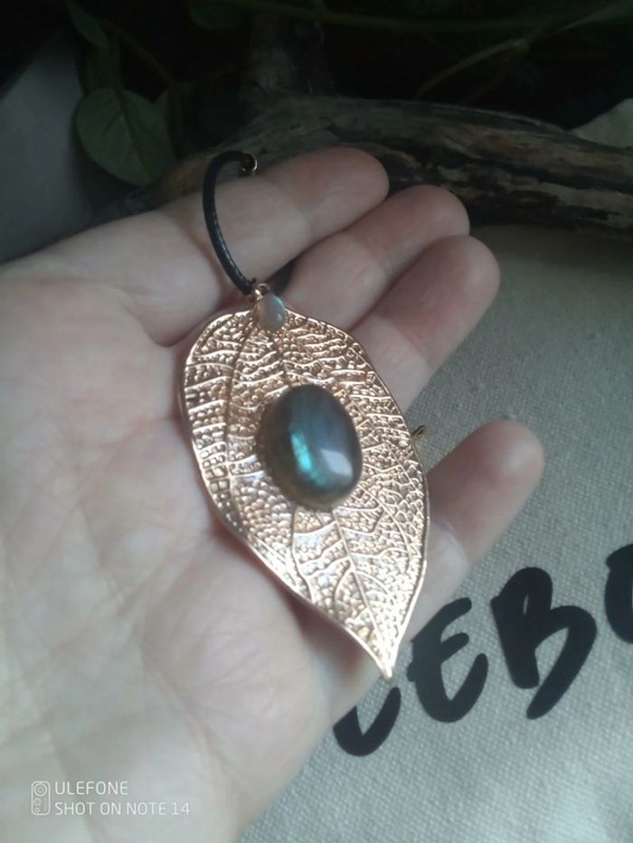 Collier feuille bohème avec pierres de labradorite - photo numéro 1
