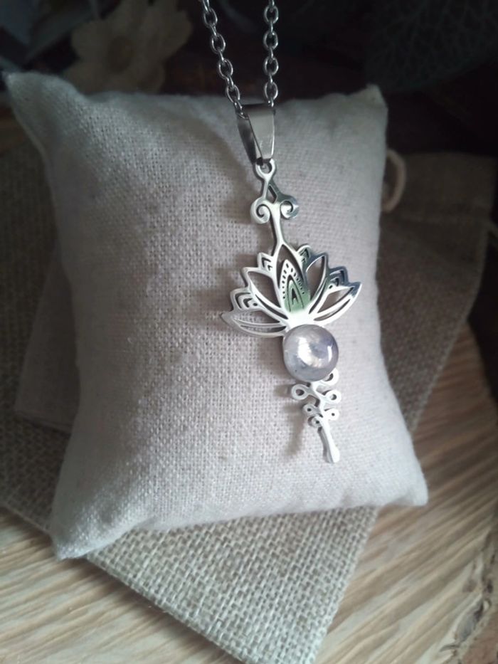 Collier en acier argenté et pierre de lune - photo numéro 2