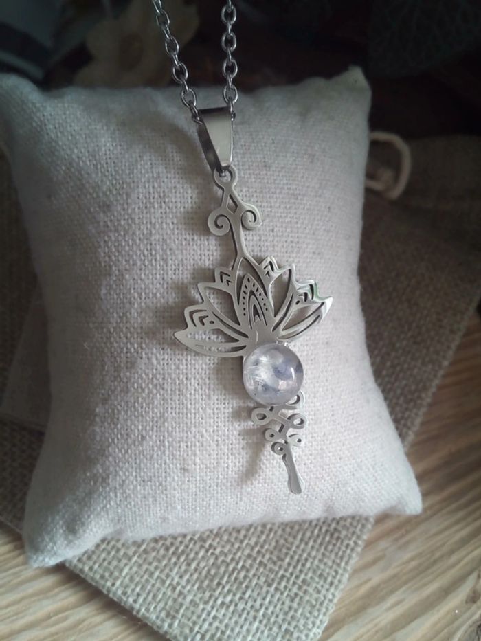 Collier en acier argenté et pierre de lune - photo numéro 1