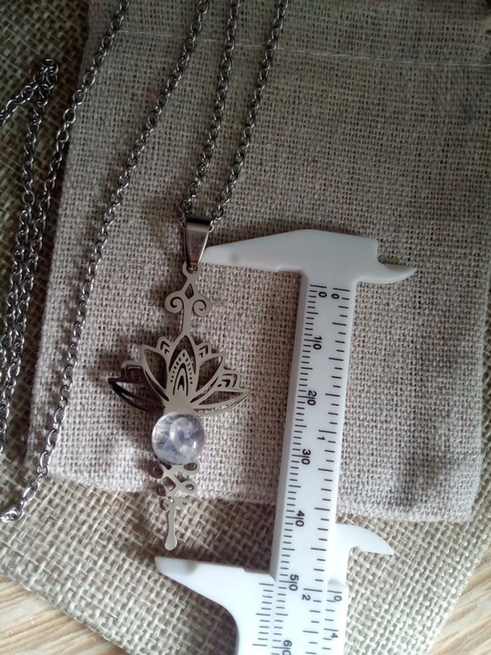 Collier en acier argenté et pierre de lune - photo numéro 3