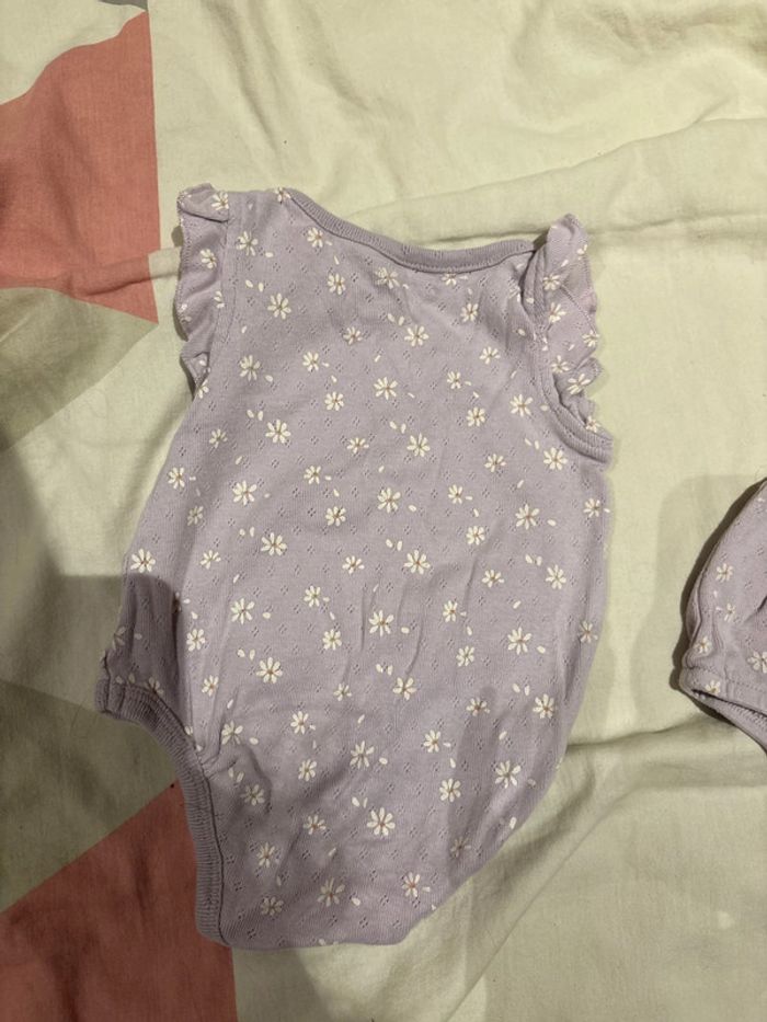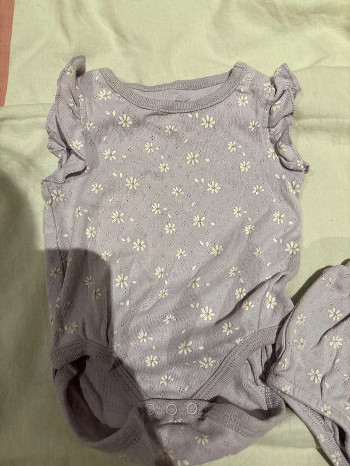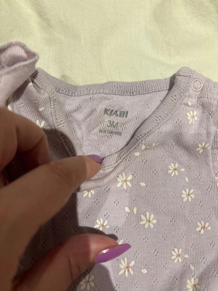 Très jolie body violet avec des petites fleurs blanche. Il y a la petite culotte qui va avec. C’est un Kiabi en 3 mois. Un peut taché au niveau du col mais ne gêne pas (voir photo) -5% des 2 articles achetés -10% des 3 articles achetés -20% des 5 articles achetés #charlie51_3moisfille