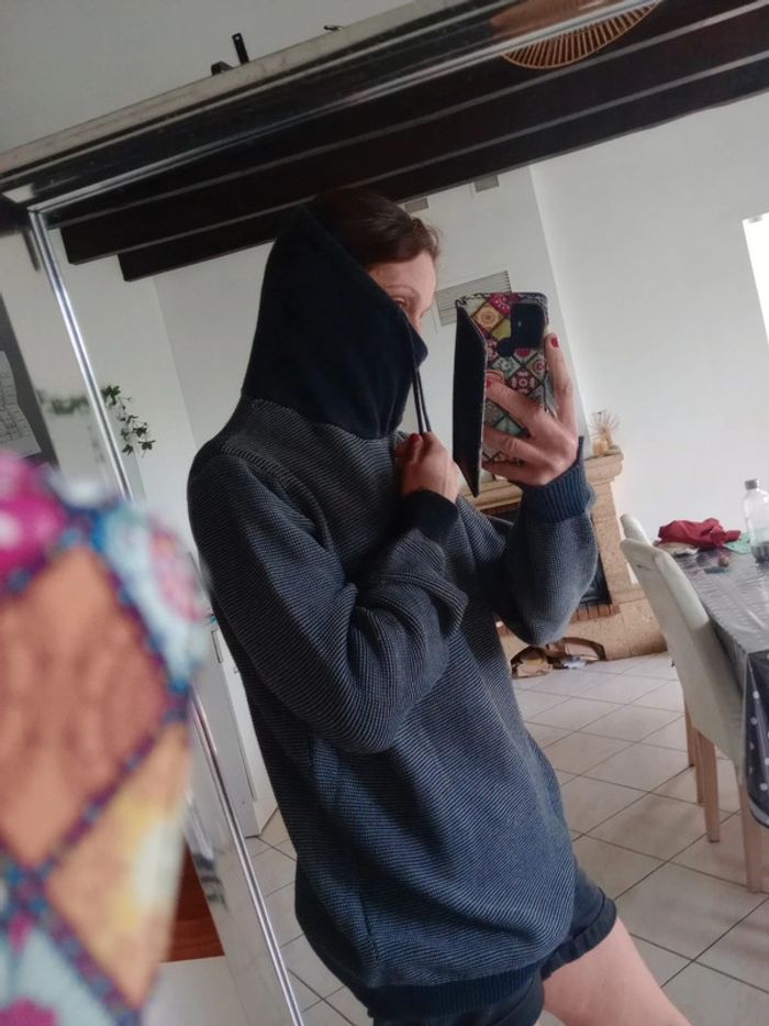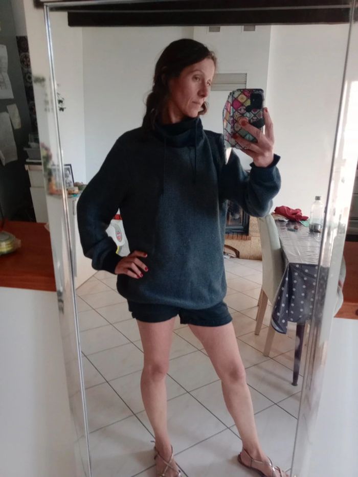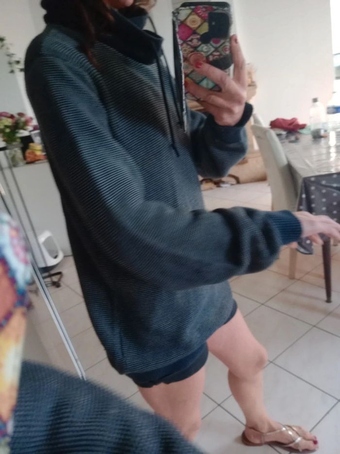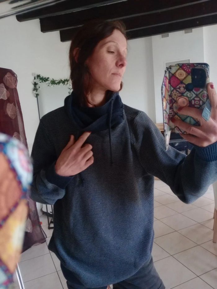 Pull avec col tombant et lien, ce col peut être remonté voir les dernières photos Il est en très bon état... Et le col en bon état... Plus d'étiquette matière je pense à du coton Épaule 46 cm longueur 80 cm aisselle 68 cm #carineleray_homme