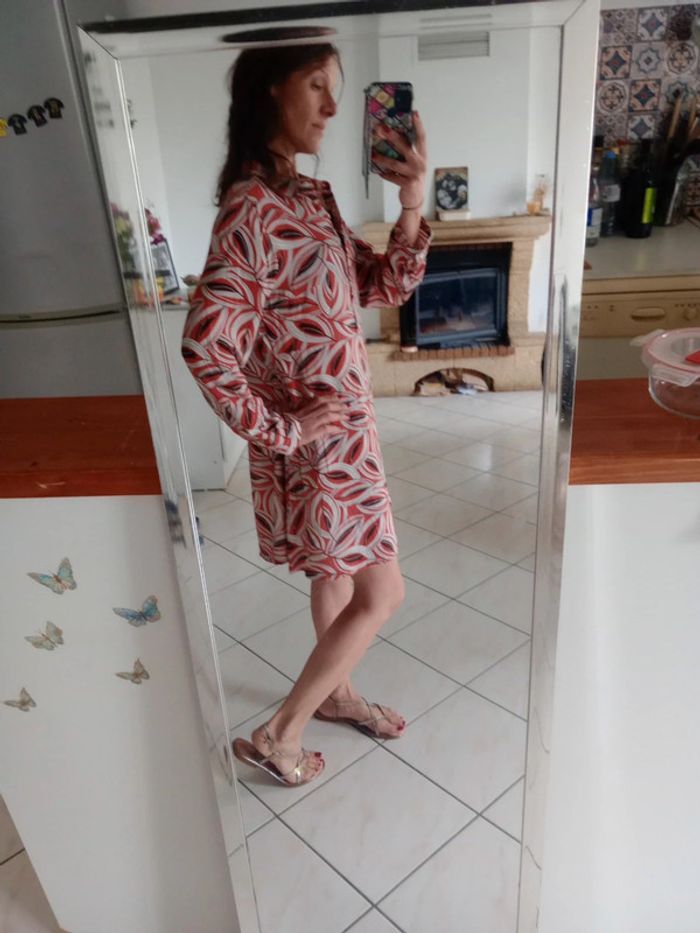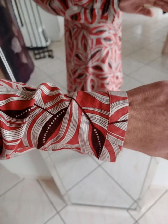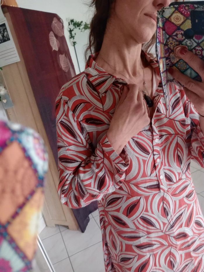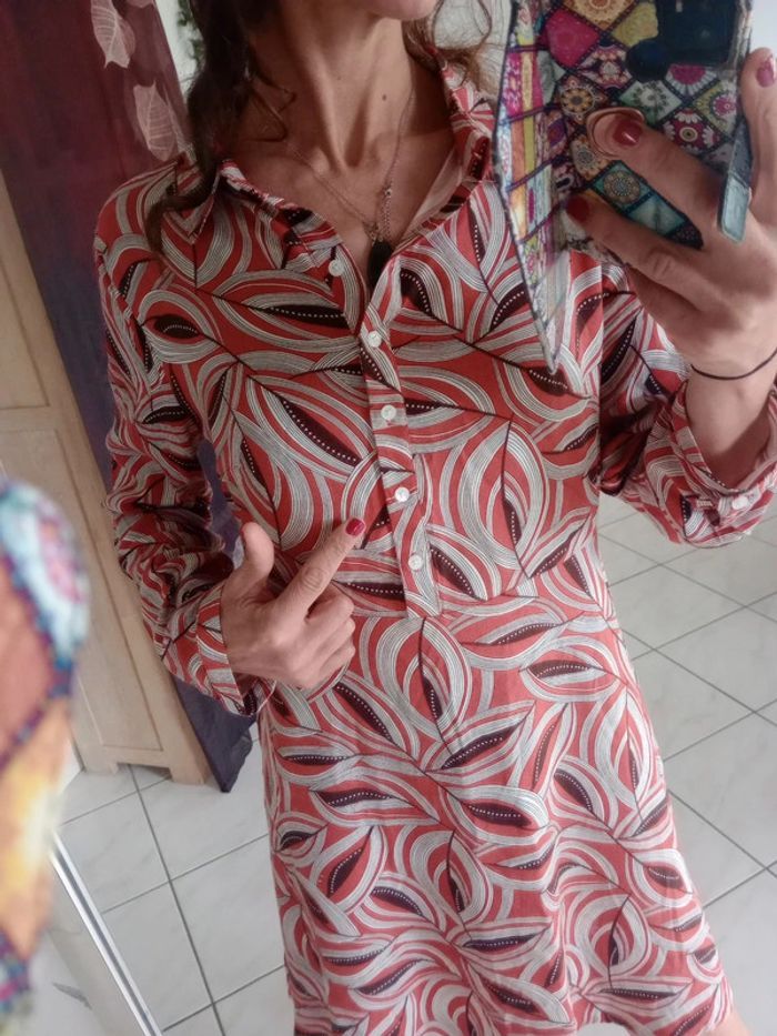 Impeccablement entretenue, aspect neuve🥰 Col type chemise Boutonnière jusqu'à la taille Manches longues Épaule 41 cm longueur 88 cm aisselle 54 cm #carineleray_femme_42