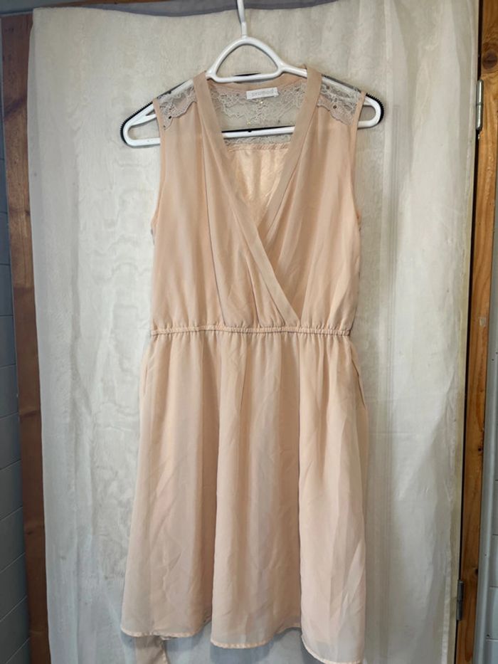 Robe fluide Beige rosé Légère Cérémonie Taille 40 Ceinture
