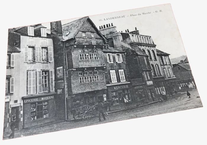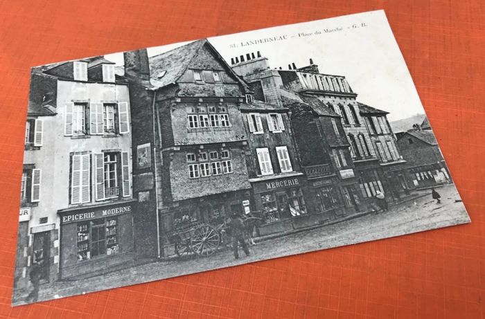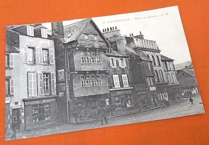 (article vendu en l' état, nous précisons carte postale légèrement ondulée état d' usage voir toutes les photos) Carte postale ancienne Landerneau (Finistère) Place du Marché