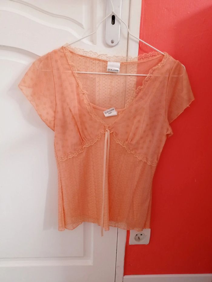Chemisier manches courtes abricot taille 38/40 - photo numéro 2