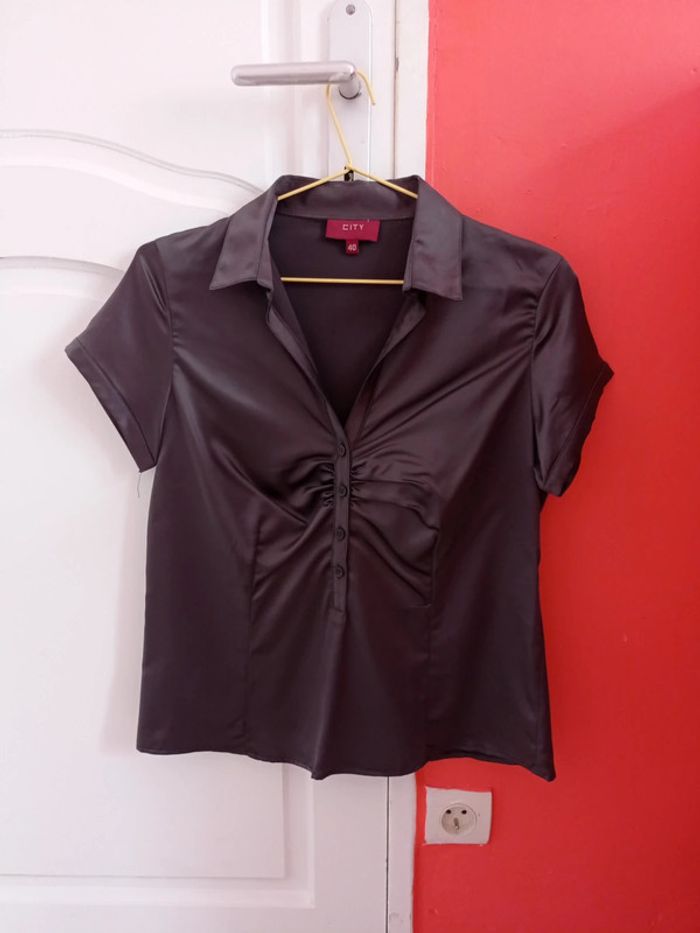 Chemisier manches courtes gris foncé La City taille 40 - photo numéro 1