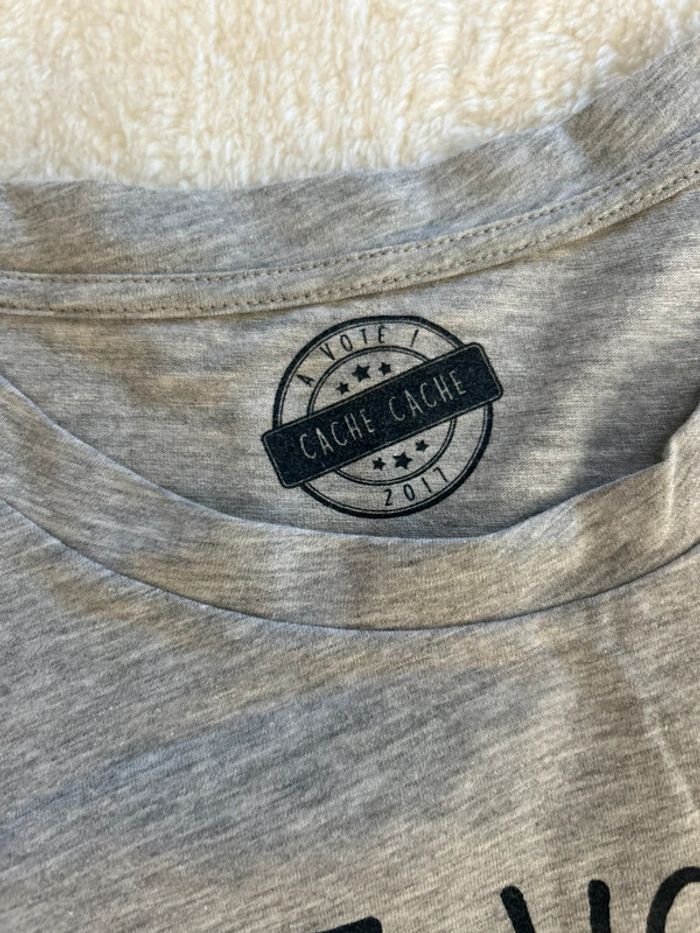 Jolie tee shirt gris laver inscription 2017 votez pipelette Taille L Marque cache cache En très bon état #charlinefemmeL N’hésitez pas si vous avez des questions