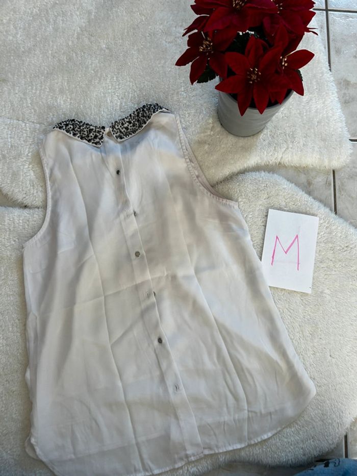 Jolie haut blanc avec perle sur le col Taille M Marque Pimkie En très bon état #charlinefemmeM N’hésitez pas si vous avez des questions