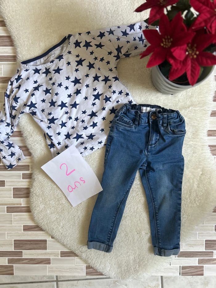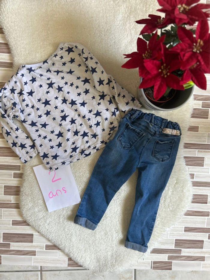 Jolie ensemble avec son haut blanc à étoile bleu et son jean Marque orchestra Taille 2 ans En très bon état #charlinelolfille2ans N’hésitez pas si vous avez des questions