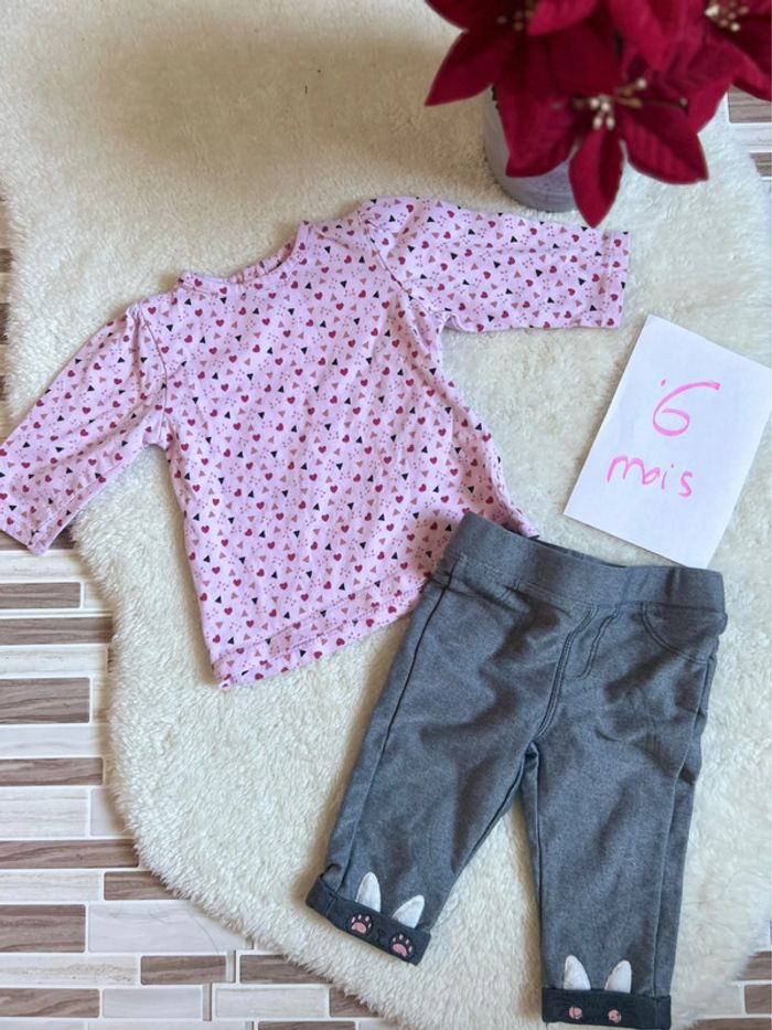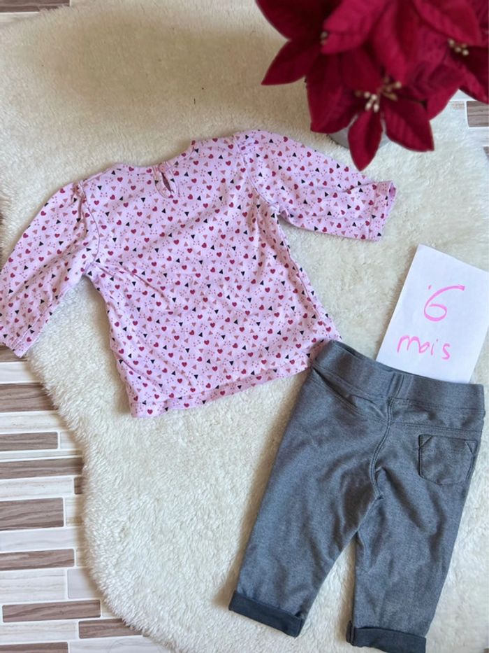 Joli ensemble Avec son haut rose à pois de la marque kimadi Et son bas gris orchestra Taille 6 mois En très bon état #charlinelolfille6mois N’hésitez pas si vous avez des questions