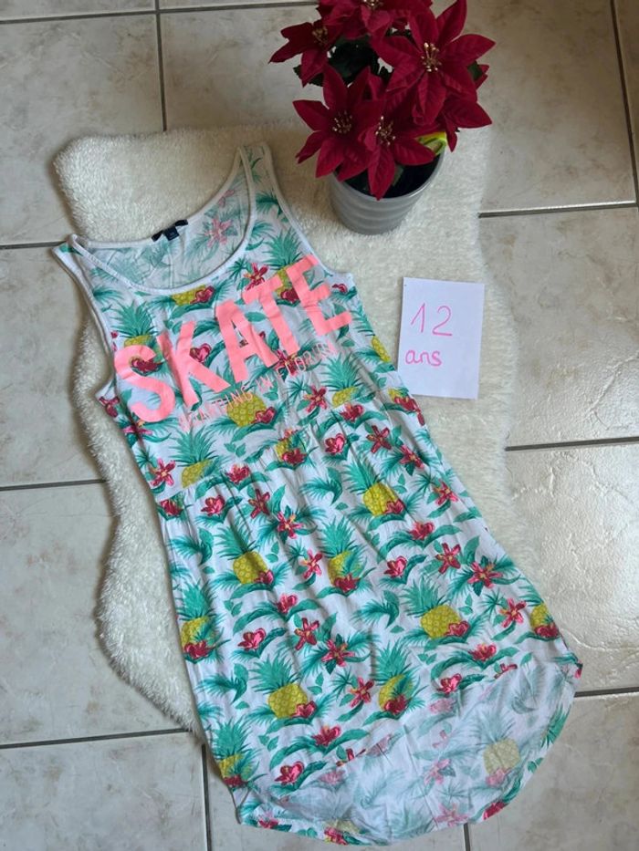Jolie robe blanche à motif ananas et fleurs Taille 12 ans Marque Kiabi En très bon état #charlinelolfille12ans N’hésitez pas si vous avez des questions