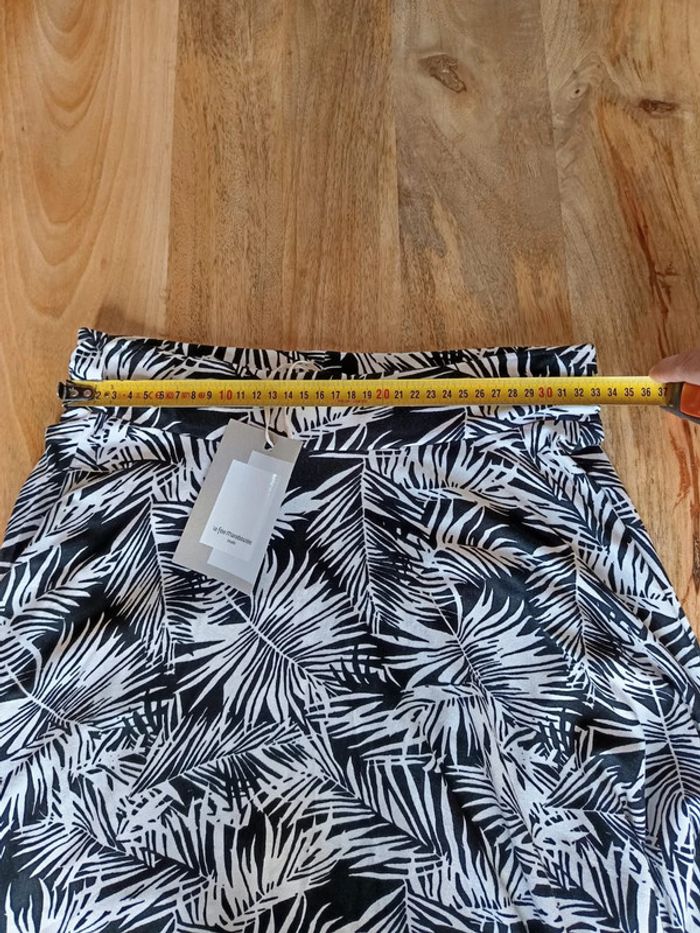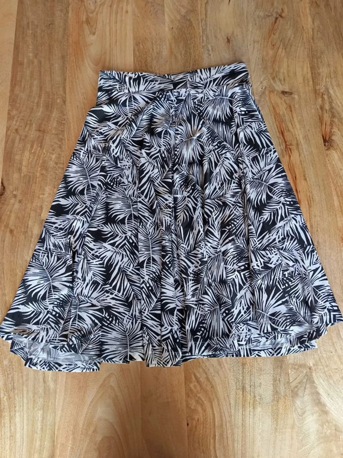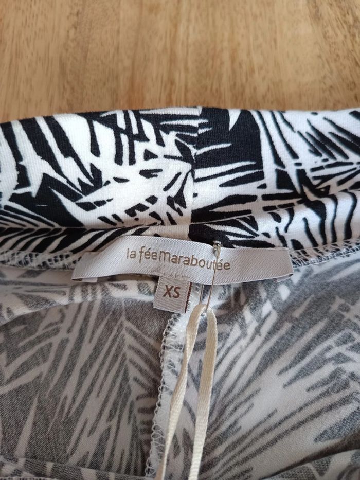 Jupe motif tropicale noire et blanche. Taille XS. De la marque « La fée maraboutée ». Neuf. Composition : 95% viscose 5% élasthanne Valeur neuf : 89€ N'hésitez pas à regrouper vos achats pour optimiser les frais de ports. #vetementfemme34mykonoa #vetementneufmykonoa