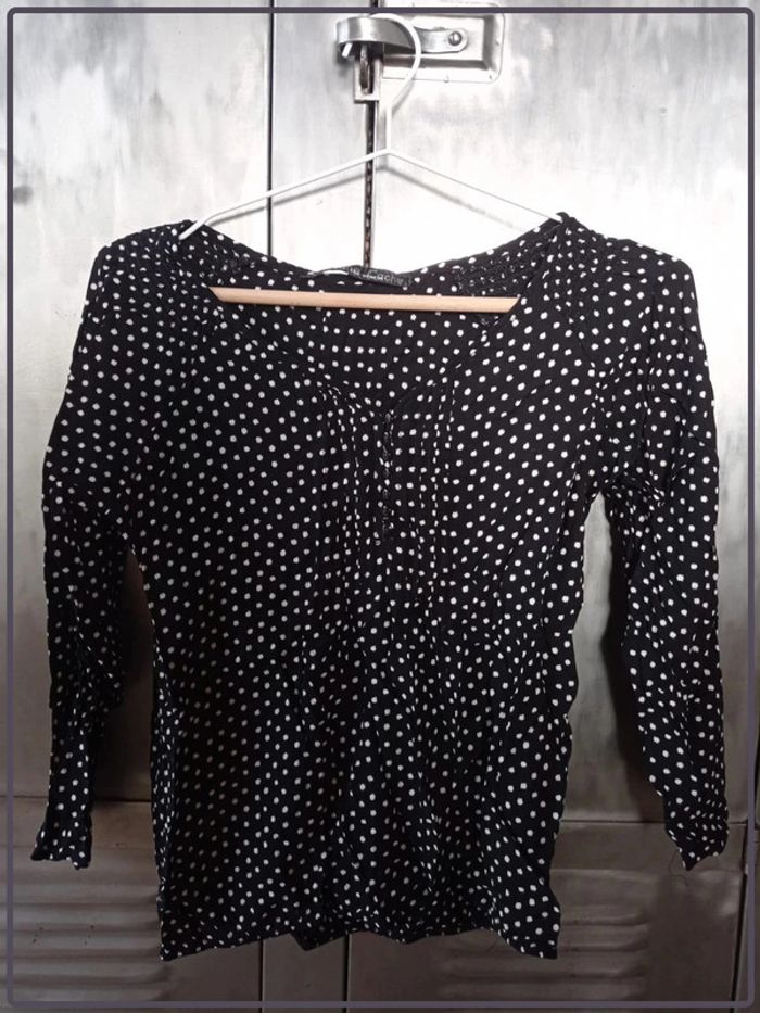 Chemisier manches longues noir et blanc cache-cache bon état taille 36 - photo numéro 1