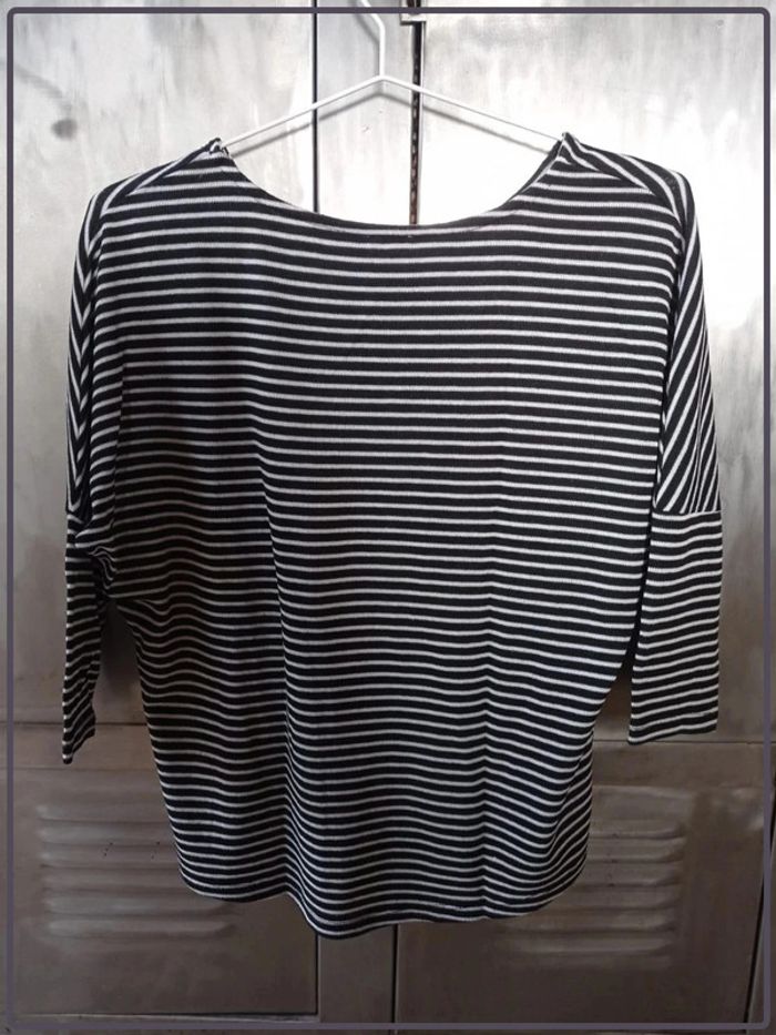 Haut manches ¾ à rayures noires et blanches Pimkie bon état taille S - photo numéro 3