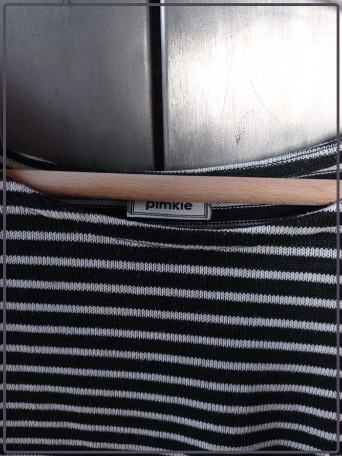 Haut manches ¾ à rayures noires et blanches. De la marque « Pimkie ». Bon état. Taille S. N’hésitez pas à regrouper vos achats pour optimiser les frais de ports. #vetementfemme36mykonoa CN3.