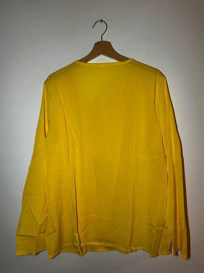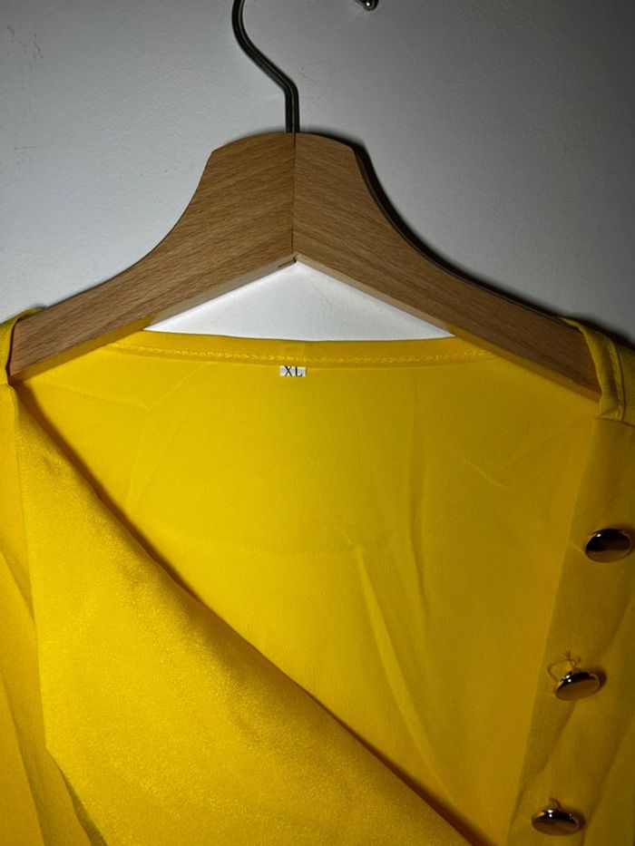Haut original de couleur jaune vif, coupe asymétrique avec fermeture à boutons noirs sur le devant. Tissu léger et agréable à porter, parfait pour le printemps ou l’été. Jamais porté , en excellent état. Convient à une taille XL, coupe légèrement ample. Détails : • Taille : XL • Couleur : Jaune • État : Très bon état #charlinefemmeXL N’hésite pas à me contacter pour plus d’infos ou photos supplémentaires !