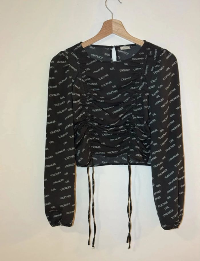 Haut noir à manches longues froncé - Taille M - photo numéro 2