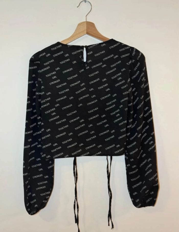 Je vends ce joli haut noir à manches longues avec un effet froncé sur le devant, ajustable grâce aux cordons. Il est orné d’un imprimé avec les mots “GIRL STRONGER TOGETHER”, parfait pour un look tendance et affirmé ! ✅ Taille M ✅ Léger et confortable ✅ Parfait pour un style casual ou habillé En très bon état, peu porté. Envoi rapide et soigné . #charlinefemmeM N’hésite pas à me contacter pour plus d’infos ! 😊